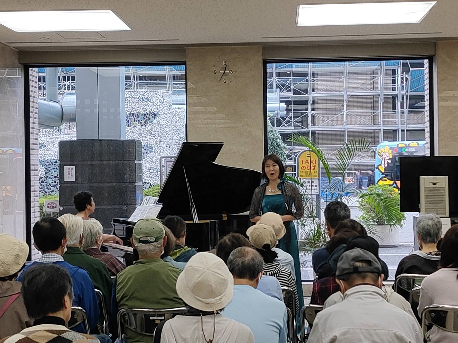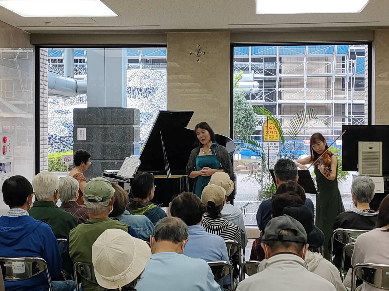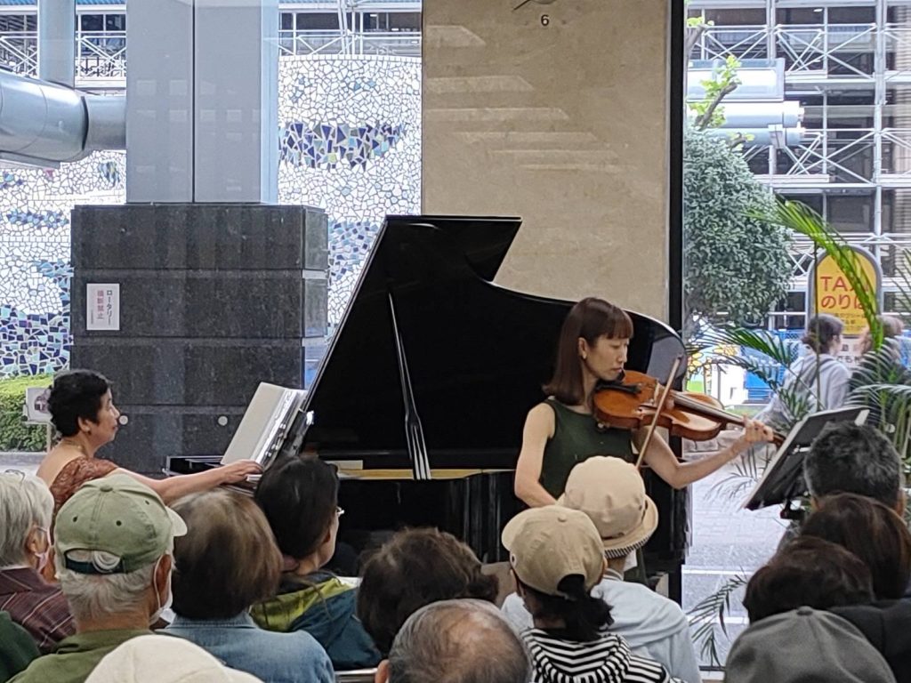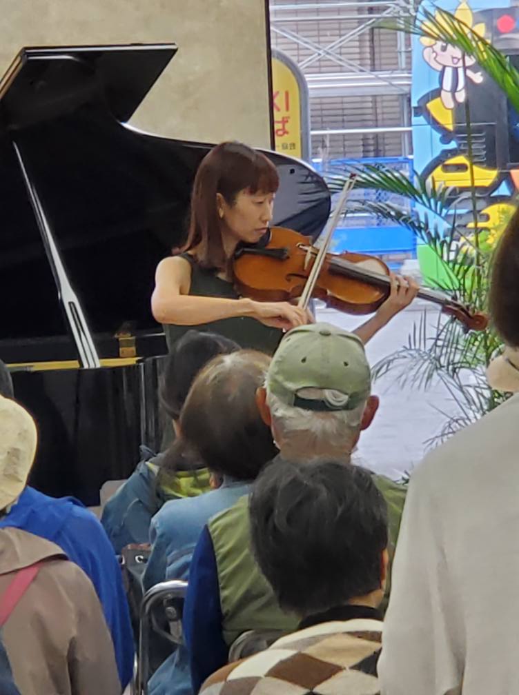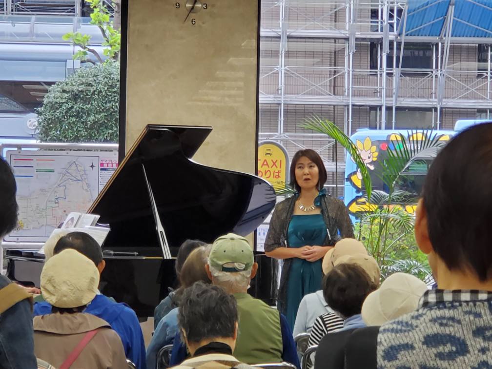 ソプラノ櫻井朋子、ヴィオラ手塚ちえ、ピアノ尾藤尚美の3名による秋の大人の雰囲気の20分のコンサート、ヴィオラの登場にも珍しく、お客様は喜んでくださいました。