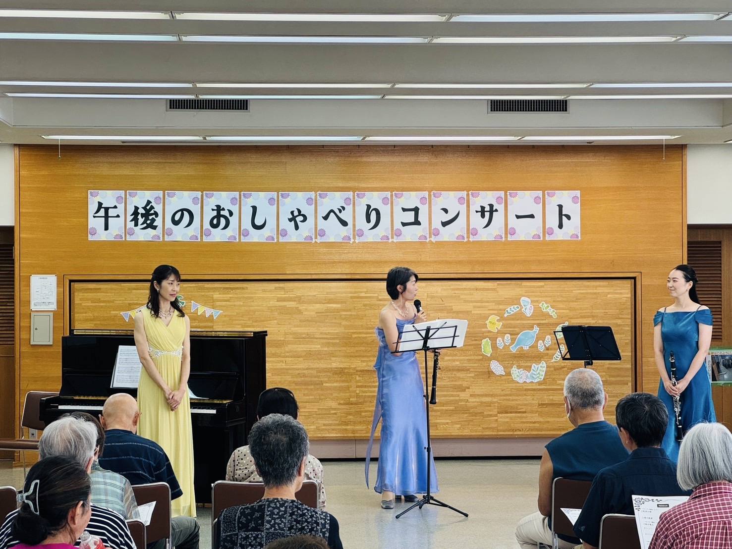 コミュニティセンターのスタッフの皆様による可愛らしく飾り付けされた舞台で聴き馴染みのあるクラシックから唱歌、歌謡曲などお届けしました♪