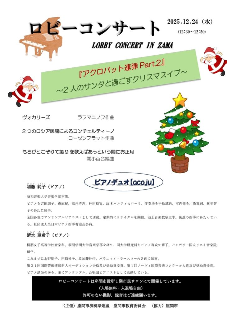 12月ロビーコンサート『アクロバット連弾Part2~2人のサンタと過ごすクリスマスイブ~』