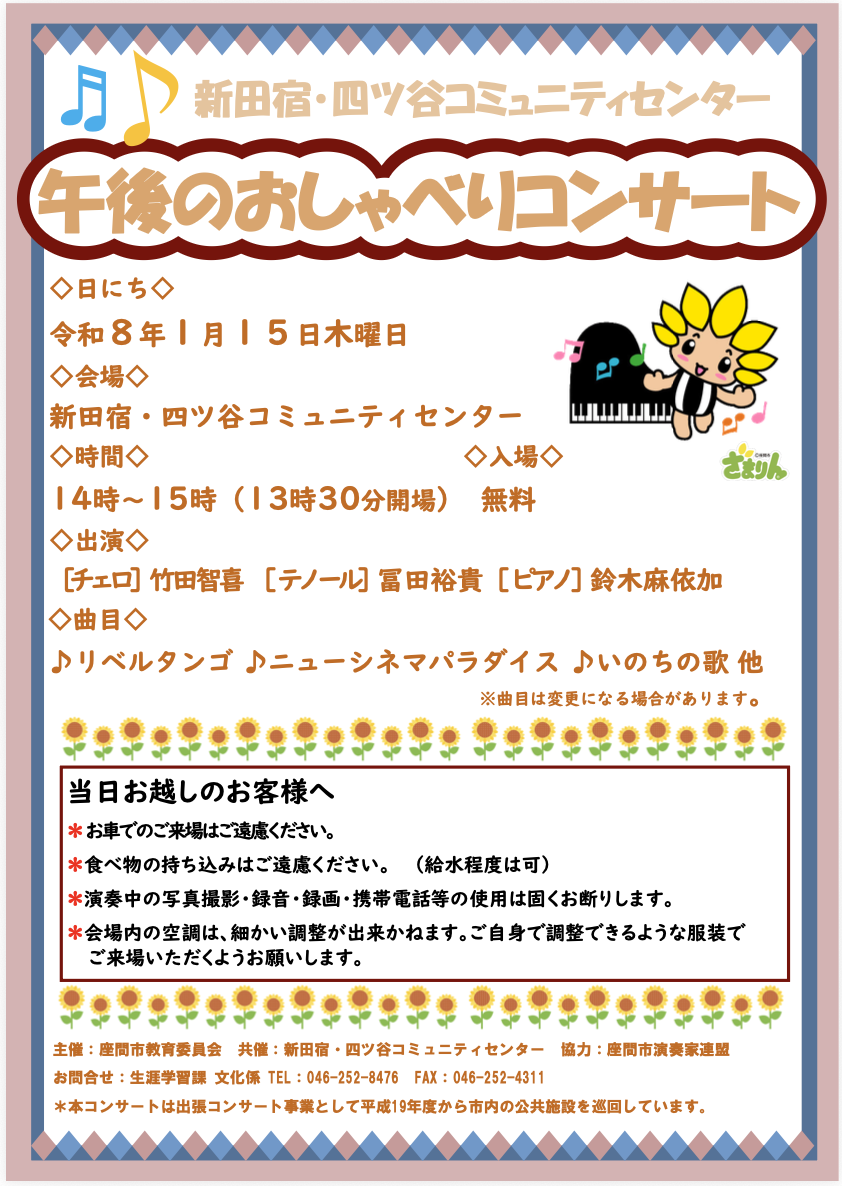 【告知】午後のおしゃべりコンサート(新田宿・四ツ谷コミセン)