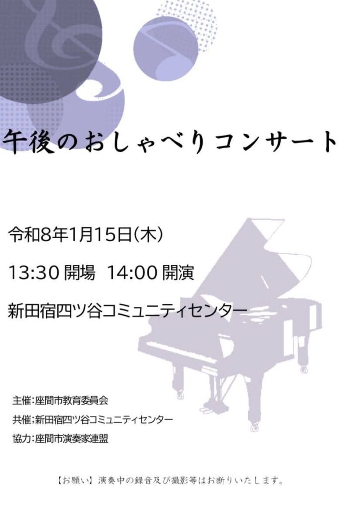 新田宿四ツ谷コミュニティーセンターにて午後のおしゃべりコンサートが開催されました。